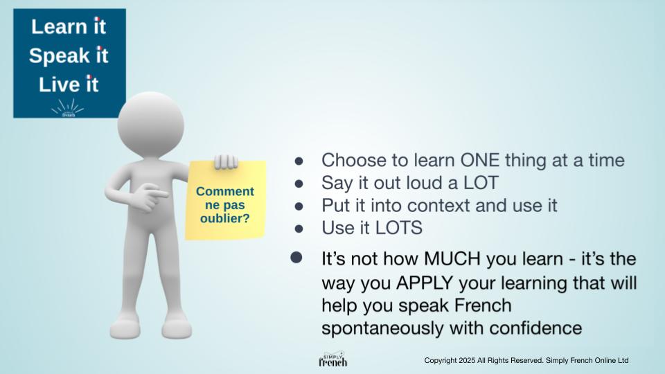 In a nutshell, there is no need to learn a lot. You would better apply your learning in order to speak French simultaneously with confidence.