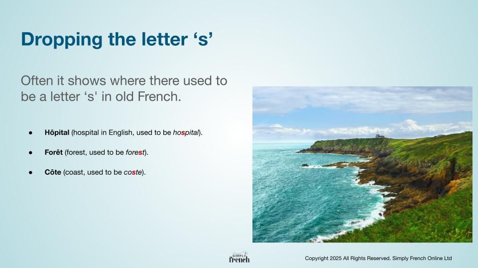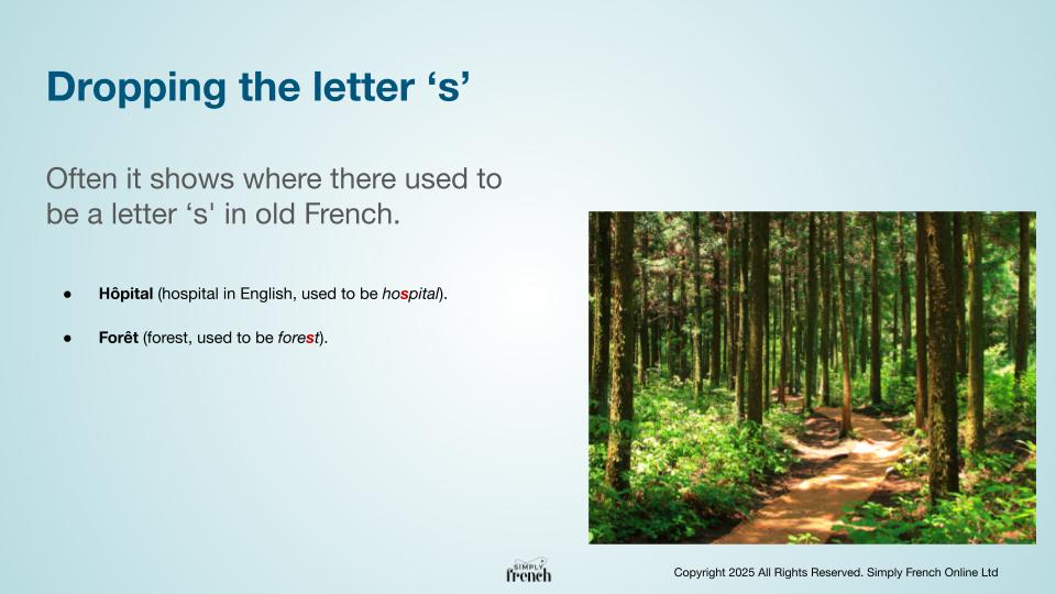 In this lesson, we have seen that this accent is present because there used to be a “s”, because it distinguishes 2 words with the same spelling and because the vowel is longer with it.