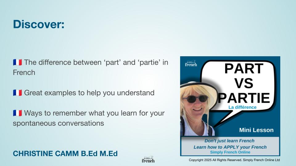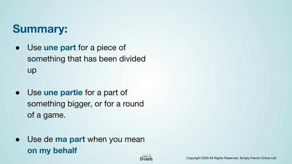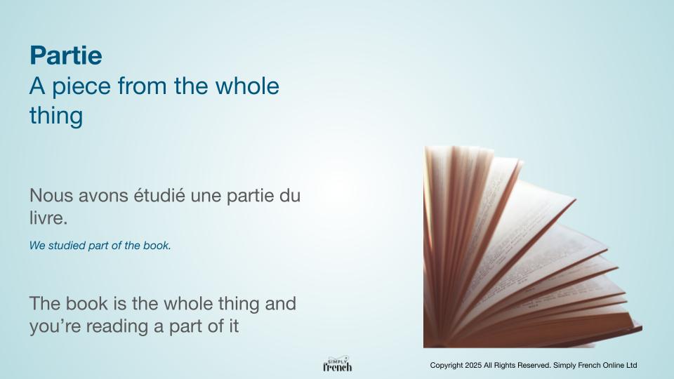 - The difference between ‘’part’ and ‘partie’ in French