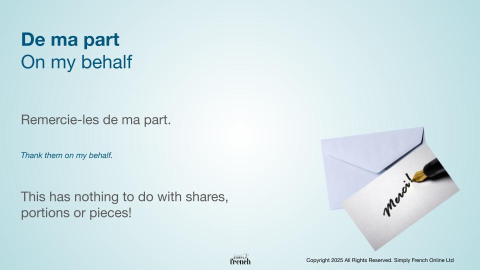 How to use the expression “de ma part” in French.