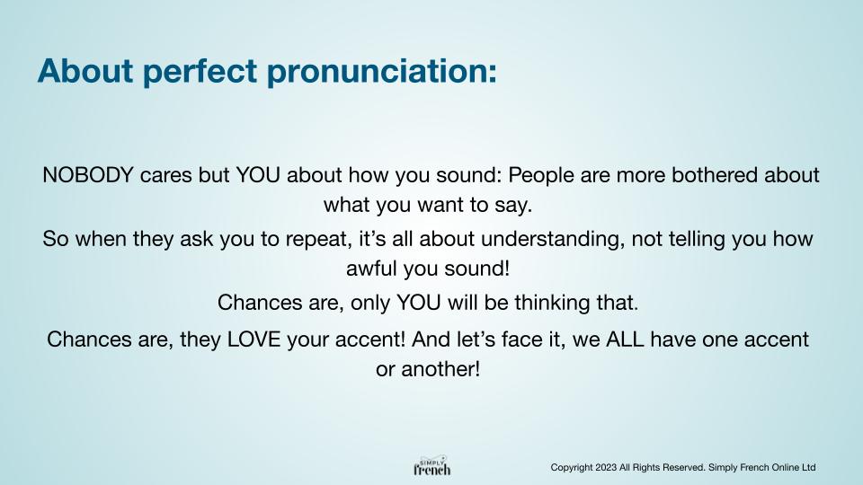 Before we dive into our subject, let’s clarify something very important. Indeed, no one expects you to speak like a native speaker and have perfect pronunciation.