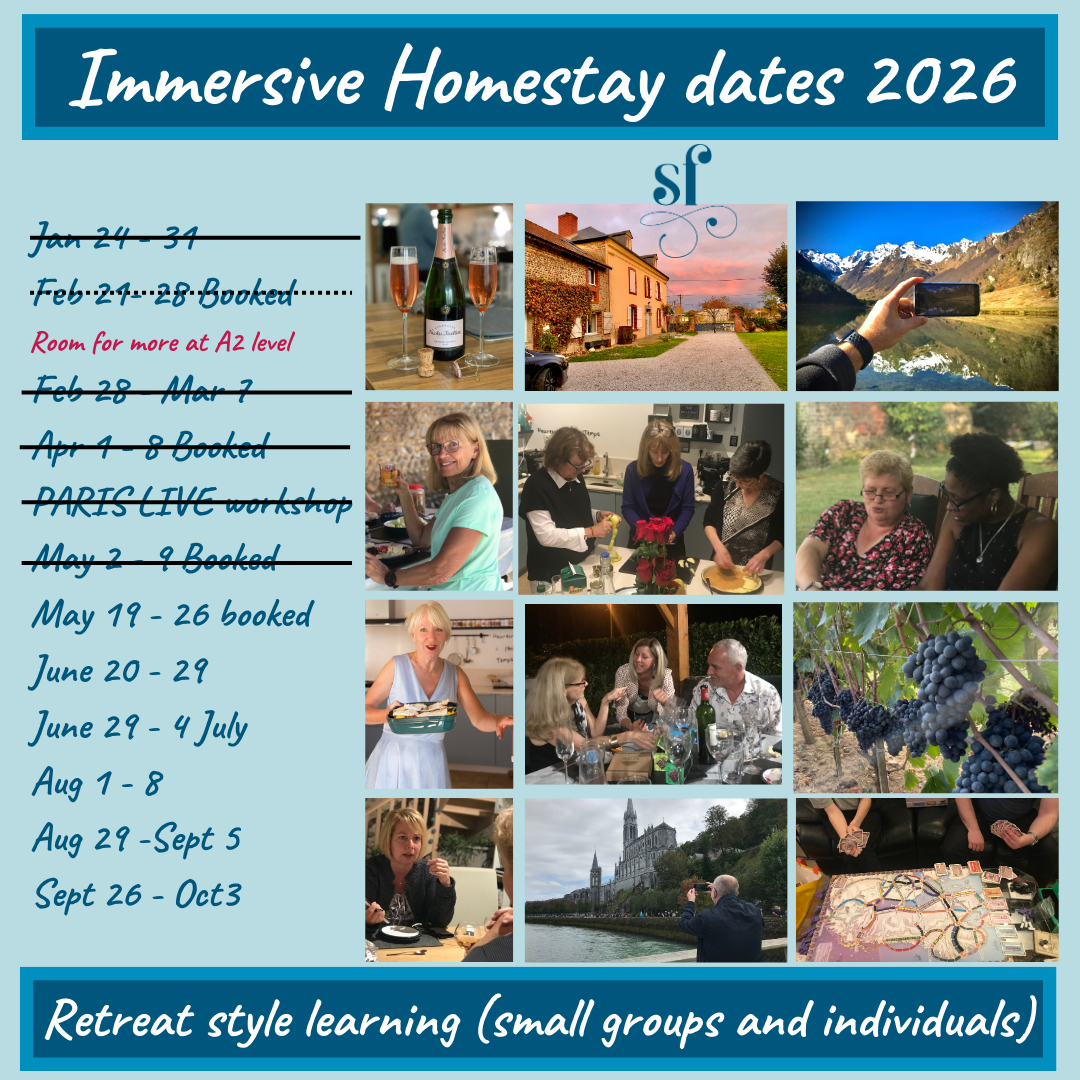 Immersive Homestays are a way of living in France: 100% French every day, lessons, learn local recipes. conversation, trips out, intensive reading sessions, meals with friends and just plain relaxation . . . a French week totally dedicated to YOU, just YOU.